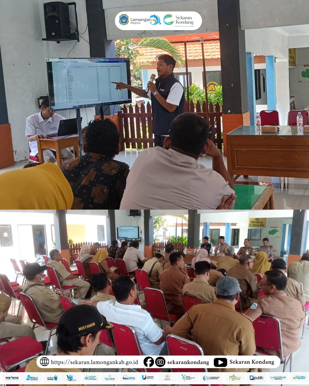 Sekaran, 13 April 2026 - Di Pendopo Kantor Kecamatan Sekaran menjadi pusat koordinasi penting diselenggarakannya sosialisasi penyaluran bantuan pangan yang diinisiasi oleh Perum Bulog. Pertemuan strategis ini mempertemukan unsur pimpinan dari dua wilayah, yakni Camat Sekaran dan Camat Maduran beserta jajaran staf terkait, serta dihadiri secara lengkap oleh seluruh Kepala Desa dari kedua kecamatan tersebut. Fokus utama dalam pertemuan ini adalah membahas teknis distribusi komoditas beras dan minyak goreng agar skema bantuan sosial yang telah direncanakan pemerintah pusat dapat terimplementasi secara efektif di tingkat lokal.